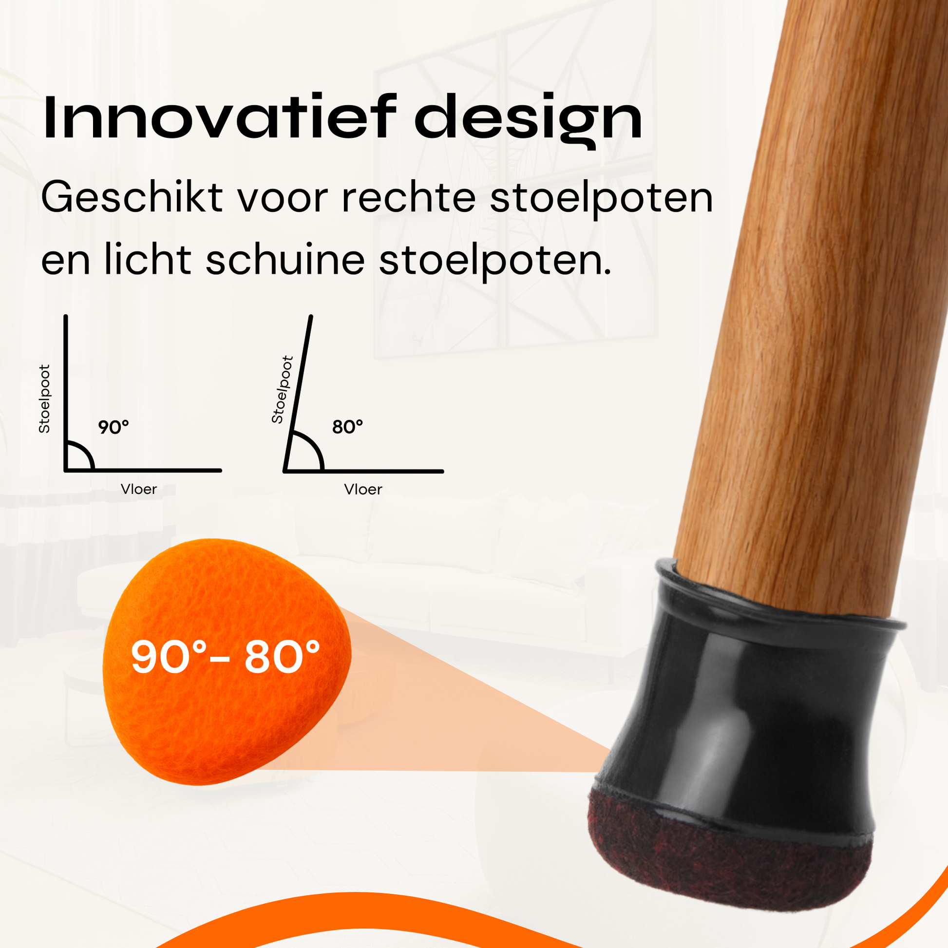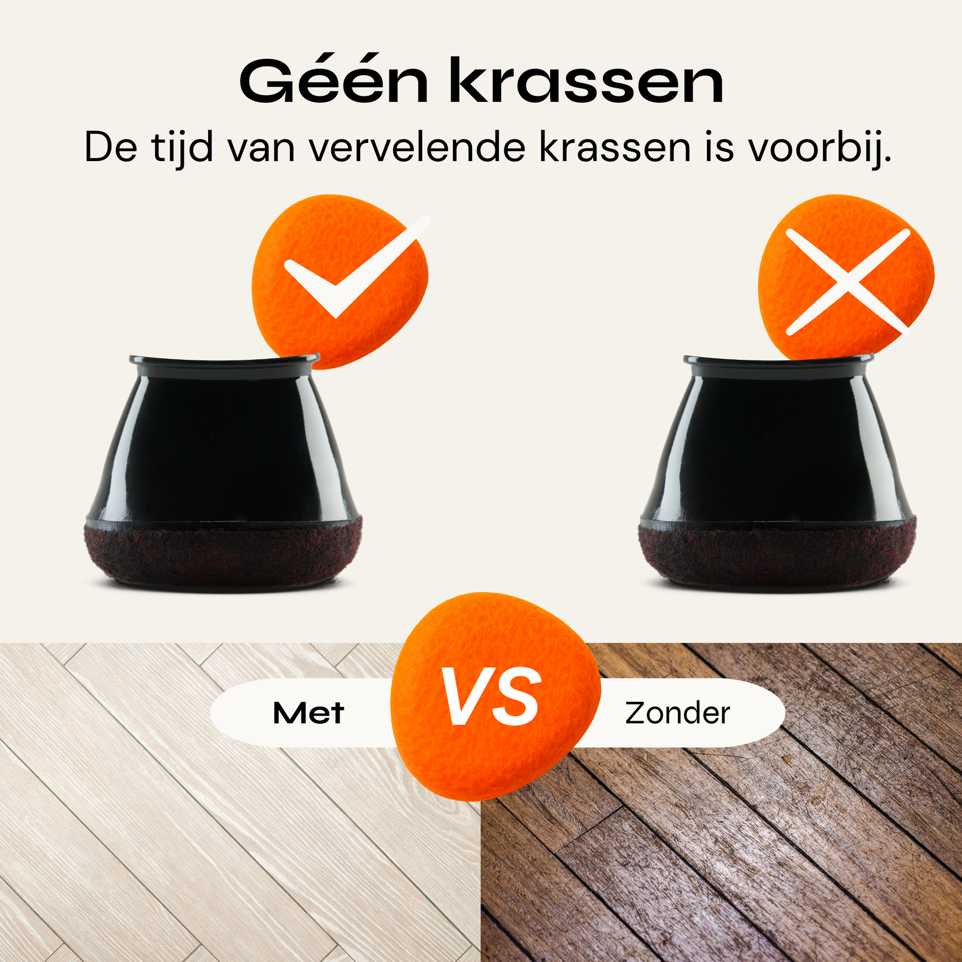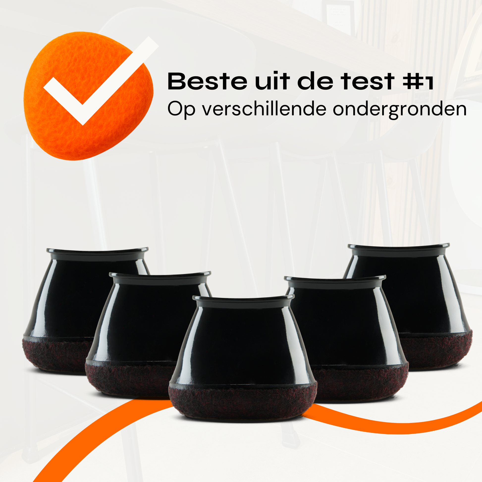 Die Stuhlbeinkappe Premium von FLOOQ® besteht zu 100 % aus festem Filz. Der Filz ist aus hochwertigen Materialien gefertigt. Wenn Sie auf der Suche nach einer effektiven Stuhlbeinkappe mit langer Lebensdauer und gutem Sitz sind, dann bin ich der Stuhlbeinschutz, den Sie haben sollten.