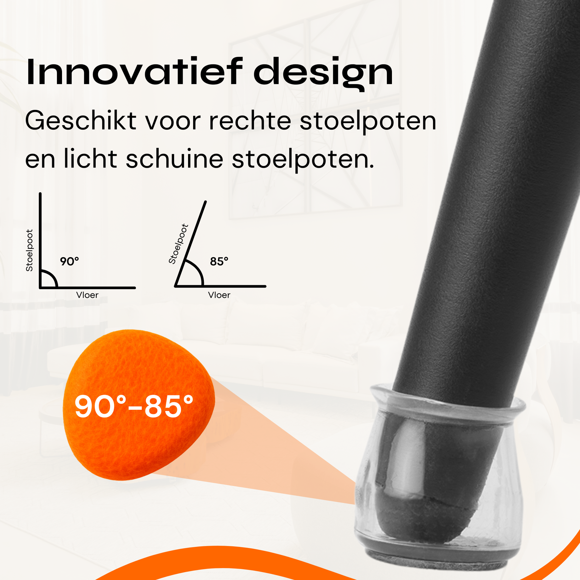 Leiden Sie ständig unter lästigen Kratzern und lauten Stühlen oder möchten Sie dies verhindern? Dann sind wir die Lösung für Sie! Wir sind sowohl für runde als auch für eckige Stuhlbeinkappen geeignet. Wir bestehen aus extra starkem Silikon, das dafür sorgt, dass wir fest an Ihren Stühlen haften. Wir sind außerdem flexibel, sodass jeder von uns leicht bestätigen kann. Unser neues Design besteht aus völlig transparentem Material, was uns einzigartig auf dem Markt macht.