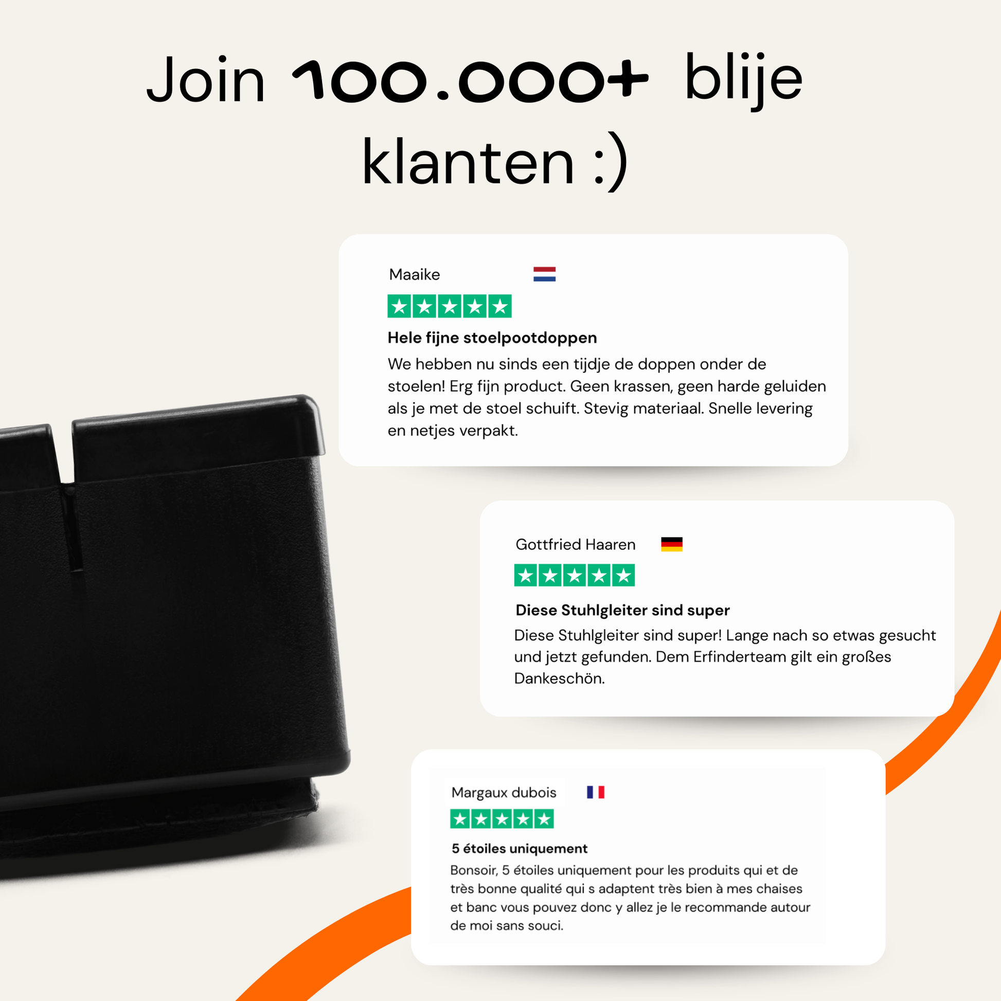 Geeignet für quadratische Stuhlbeine und andere Möbel.