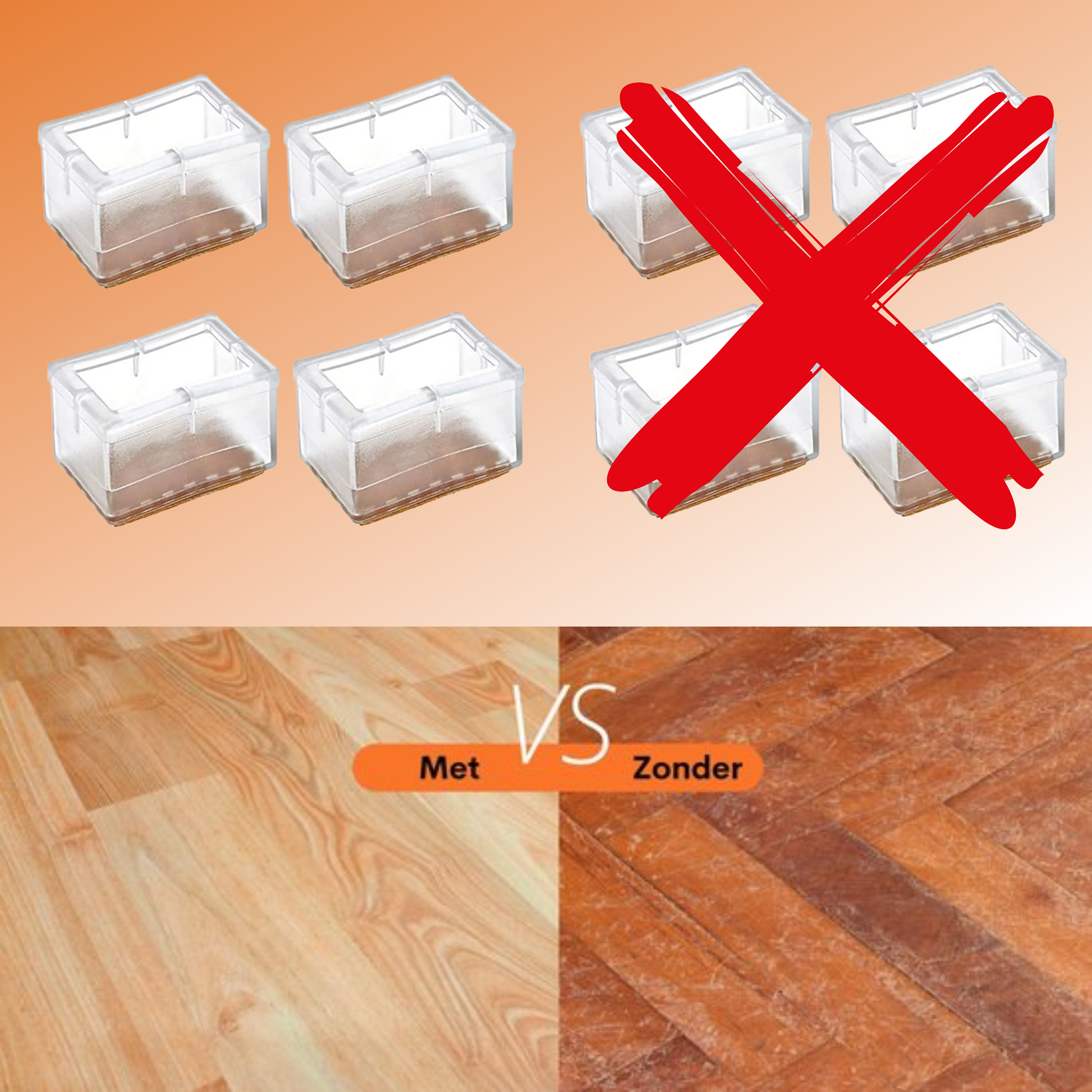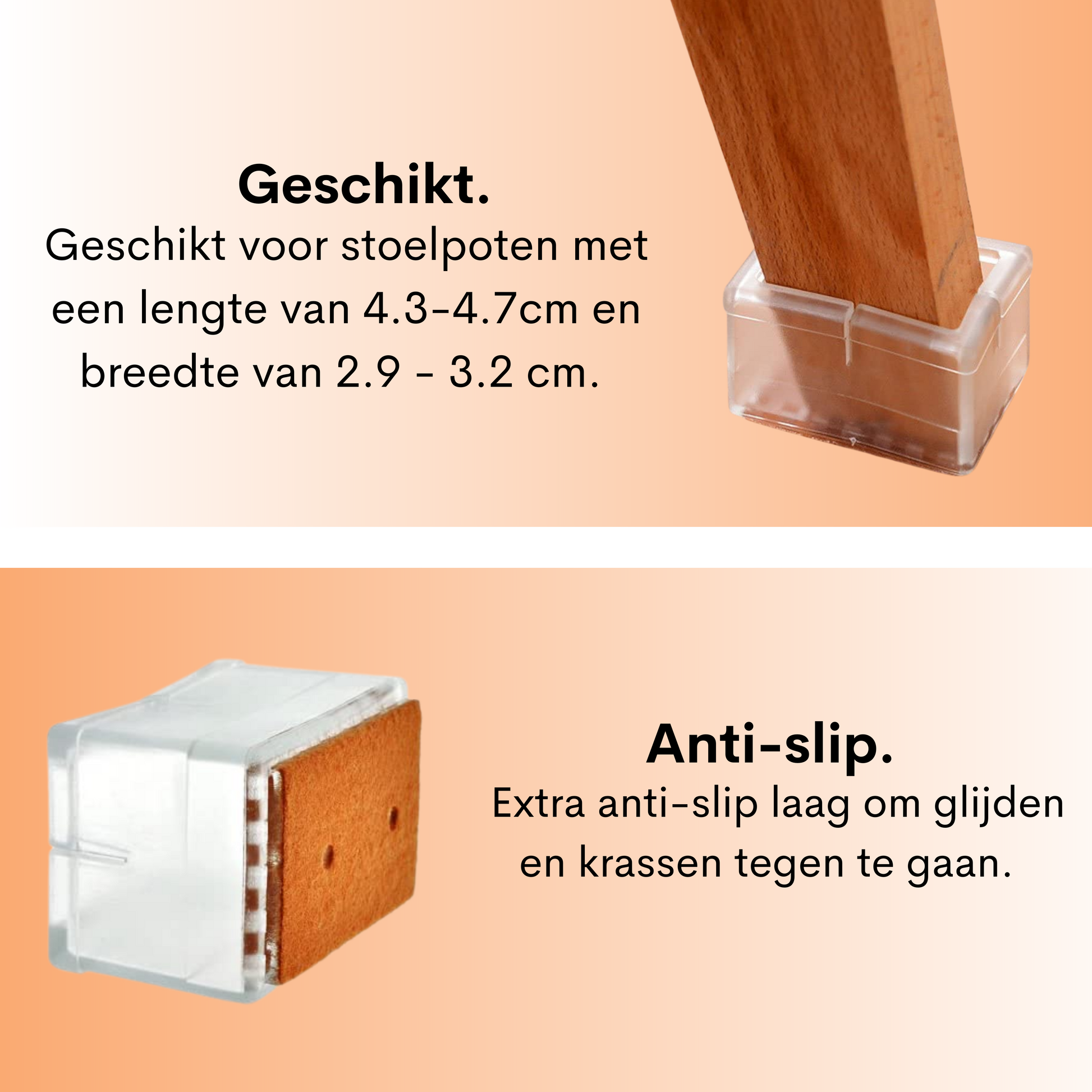 Geschikt voor vierkante stoelpoten en andere meubels.