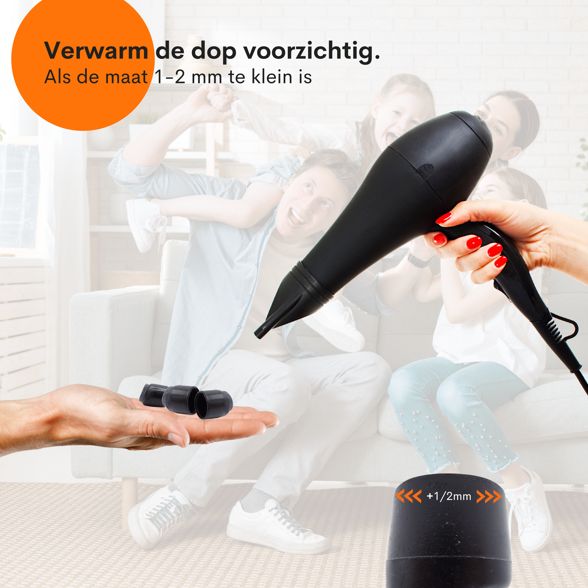 De stoelpootdop is ontworpen in de kleur zwart. Daarnaast is er keuze uit een aantal maten waardoor deze geschikt is voor veel stoelpoten. Kies in de optiebalk de maat die het beste past bij uw stoelen.