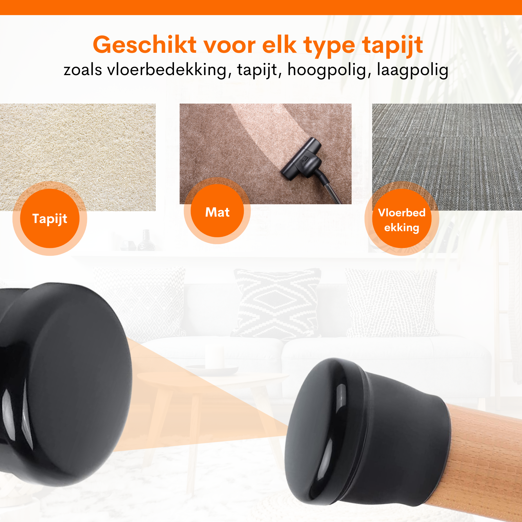 De Premium Flexibele stoelpootdop van FLOOQ® zijn speciaal gemaakt voor tapijt en vloerbedekking. Door de gladde onderkant kunnen stoelen zonder moeite worden geschoven over tapijt en vloerbedekking. Als je opzoek bent naar een effectieve bescherming van jouw tapijt of vloerbedekking met een lange levensduur dan is deze stoelpootdop de oplossing voor jou.