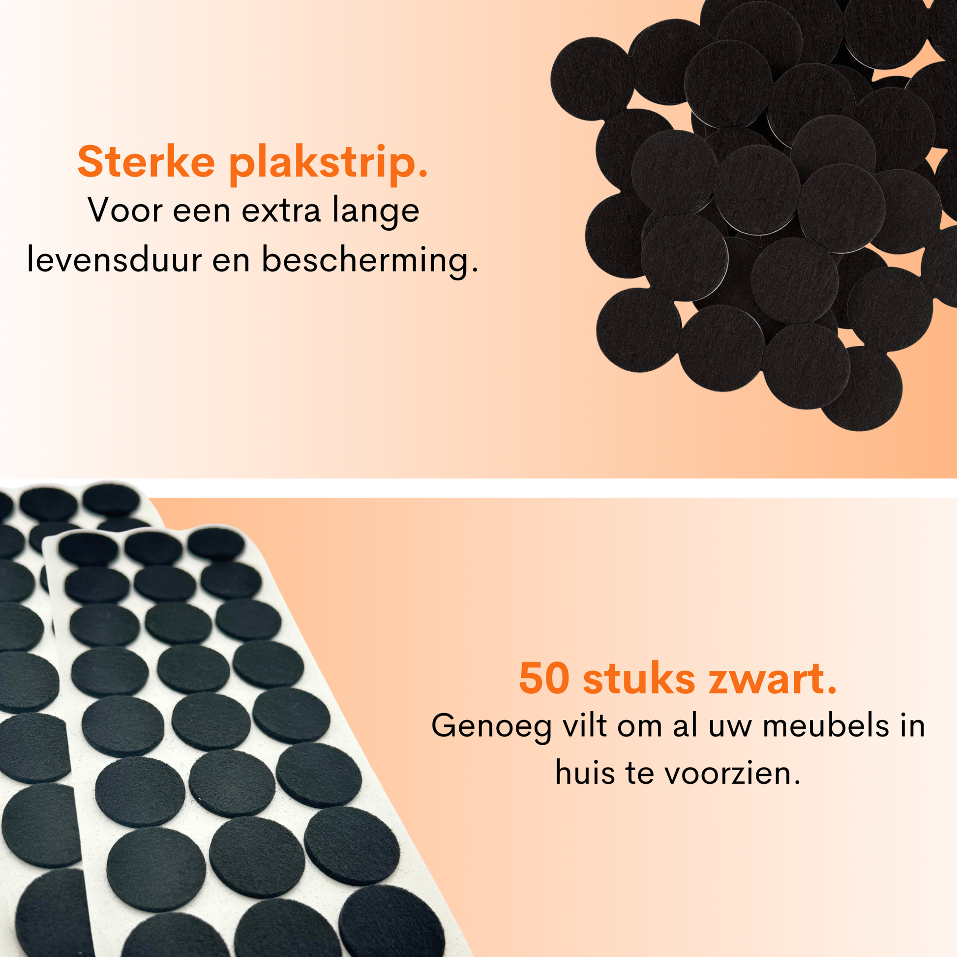 De viltjes zijn ontworpen met een extra sterke plakrand waardoor de levensduur langer is dan standaard viltjes. Deze varianten zijn geschikt voor alle vloertypen binnenshuis.