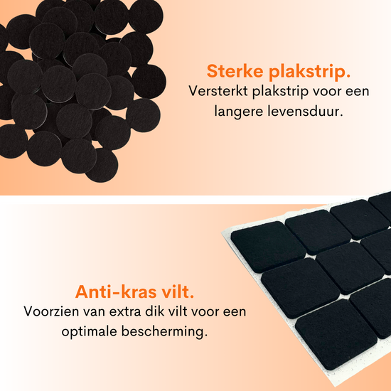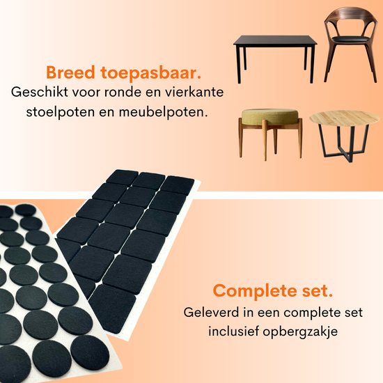 FLOOQ®-underläggen är gjorda av högkvalitativ material med extra tjock vilt vilket gör att ditt golv skyddas optimalt. Filterna är designade i färgen svart vilket gör att de en modern utseende har. Om du letar efter effektiv skydd för stolben eller möbler, då är dessa filtar lösningen för dig. Det kompletta setet består av 120 filtar i både rund och fyrkantig form.