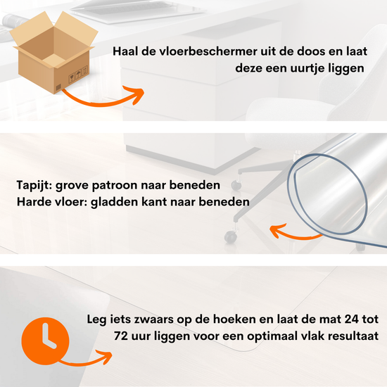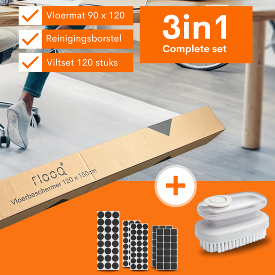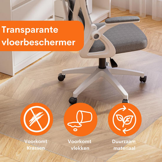 Skydda dina golv mot slitage och skador med FLOOQ® transparent golvmatta. Denna mångsidiga golvskydd, med mått på 90 x 120 eller 120 x 150 cm, är perfekt för både hemmet och kontoret och erbjuder diskret skydd utan att kompromissa med estetiken i ditt utrymme. Dessutom levereras denna matta med en praktisk handborste, speciellt utformad för att hålla din golvmatta ren och klar.