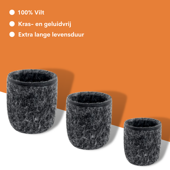 Premium filtdopp från FLOOQ® är tillverkad av 100% massivt filt. Materialet kommer från återvunna PET-flaskor. Om du letar efter en effektiv stolskydd med lång livslängd som också är stilfull, då är jag varianten du bör ha.