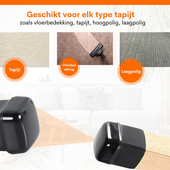 FLOOQ - Stoelpootdoppen - Tapijt/vloerbedekking - Vierkant - Franco