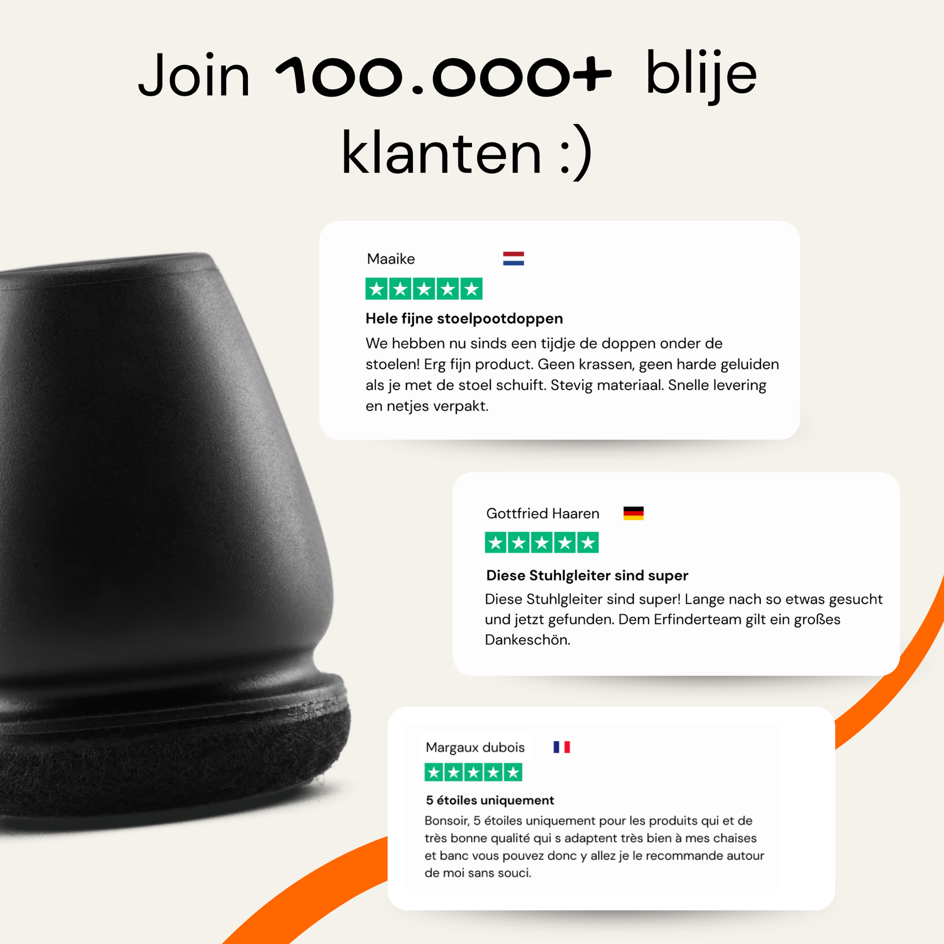 Med min hjälp kan du flytta dina stolar utan att de ger ifrån sig ljud och/eller repar ditt golv. Denna variant är lämplig för alla typer av golv inomhus.