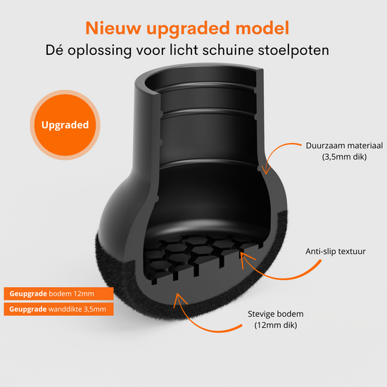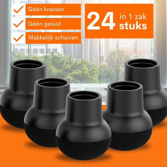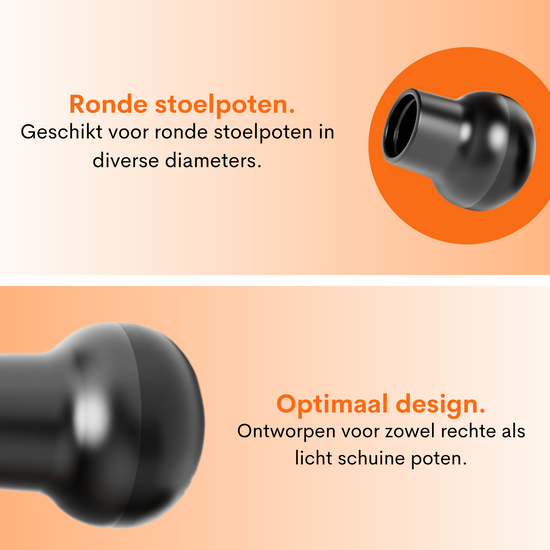 De stoelpootdop is ontworpen in de kleur zwart. Daarnaast is er keuze uit een aantal maten waardoor deze geschikt zijn voor vrijwel elke stoelpoot. Kies in de optiebalk de maat die het beste past bij uw stoelen.