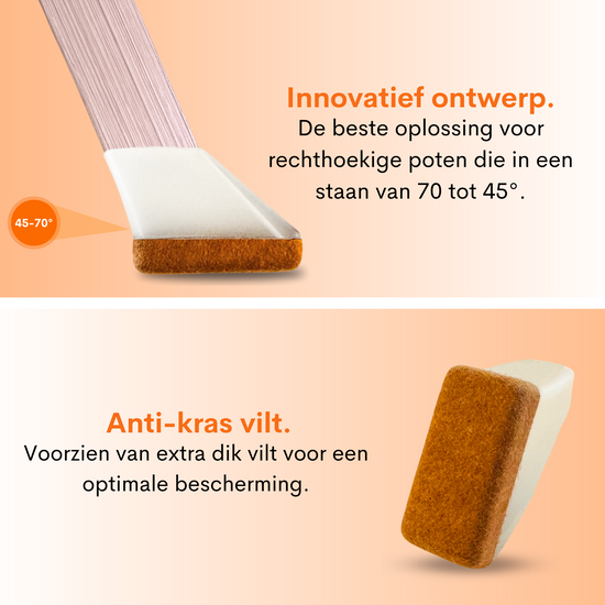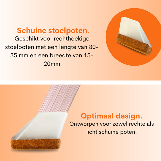 Premium stolpfotsskyddet från FLOOQ® är tillverkat av 100% massivt filt. Filtet är gjort av högkvalitativa material. Om du letar efter ett effektivt stolpfotsskydd med lång livslängd och som passar bra, då är jag stolpfotsskyddet du behöver. Denna variant är lämplig för rektangulära stolpfötter med en längd på 30-35 mm och en bredd på 15-20 mm. Denna produkt har utvecklats med avancerad teknik och har en unik, patenterad design.